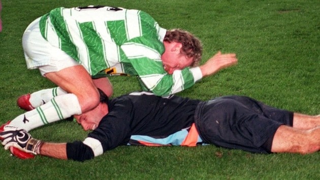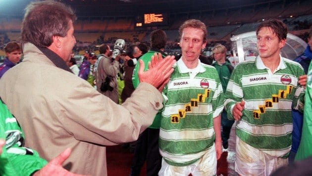 Auf den Tag genau 30 Jahre nach der Sensation gegen Sporting hat Rapid am Sonntag im Hit der Liga Sturm Graz zu Gast – einer mischte 1995 auf dem Rasen mit, gegen die Steirer wird er dies vom Spielfeldrand: Peter Stöger! „Wir hatten damals in etwa genau so viele Zuschauer“, verweist Rapids Trainer auf eine Parallele und auch ein Kuriosum beim 4:0 gegen Sporting: „Da hatte sich das Happel-Stadion zehn Minuten vor Schluss geleert, da nur noch wenige an uns glaubten.“ Dafür war es mit Beginn der Verlängerung voller als davor: „Der Eindruck von uns Spielern war, dass erst 8000 gegangen und dann 12.000 wieder gekommen waren“, lacht Stöger.